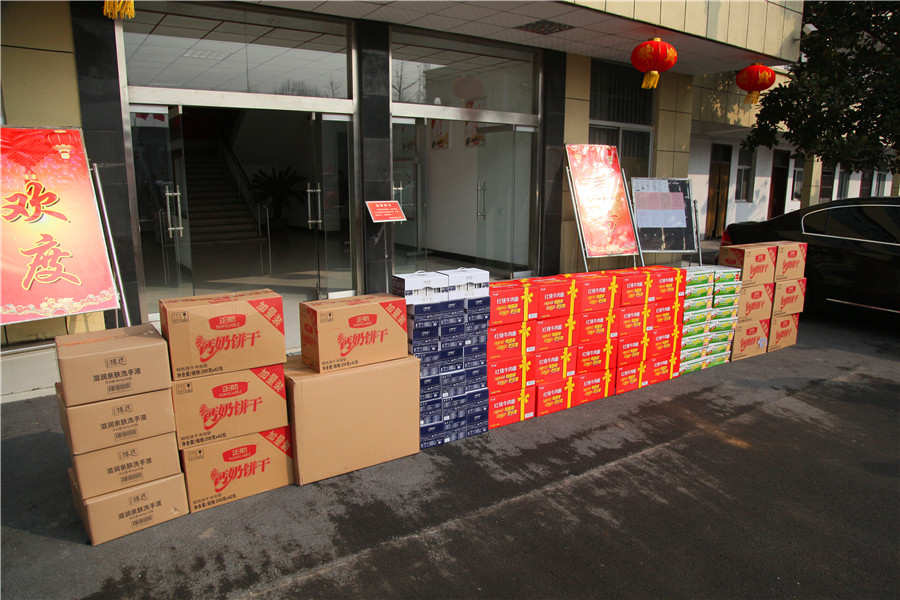 为助力我市疫情防控工作扎实开展,2月9日,市信华集团董事长徐俊将防护口罩、消毒液、方便面、火腿肠、牛奶、饼干等日常防疫工作用品送到了我市南沙河镇、官桥镇、柴胡店镇防疫一线现场,并向坚守在防疫一线工作的同志们表示关心和感谢。