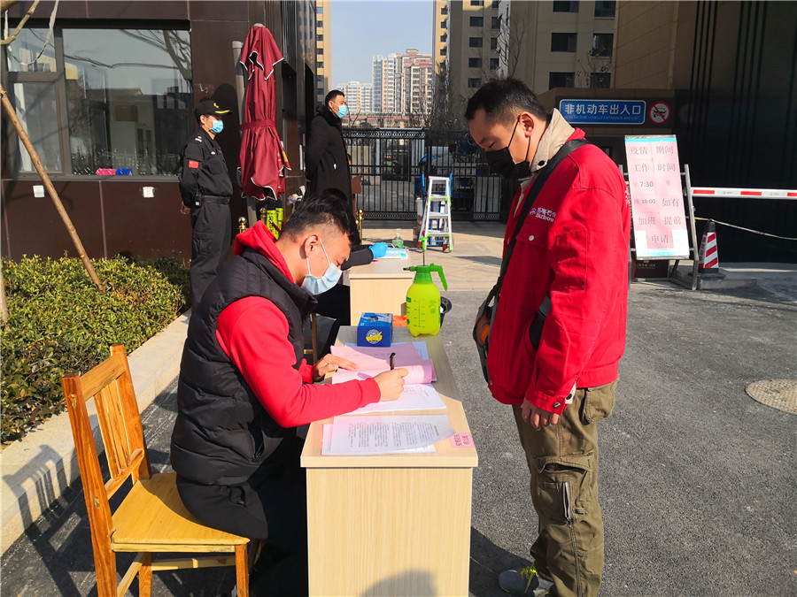 据该项目负责人孔亚东介绍,复工前,该项目部多次以网络视频形式进行联系沟通,科学合理的部署疫情防控、复工复产等工作,成立了疫情防控领导小组,制定了详实的返岗复工疫情防控方案,配足了疫情防控物资,建立了人员出入登记、体温检测等各种台账,制作了防疫宣传牌和明白纸,对复工场所进行了消毒,严格落实了复工前疫情防控措施,在经市住建局、市建筑业服务中心等上级部门检查核准后正式复工。本次复工人员仅为我市当地工人,主要包括太阳能、监控设备、地下车库安装等分散作业施工项目,在施工过程中,他们也会按照要求严格做好复工后的疫情防控工作。