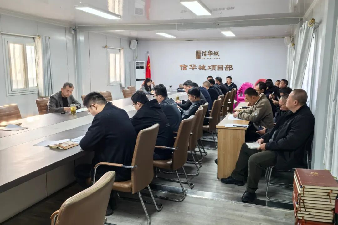 11 月 3 日,信华发展公司在瑭园项目部召开重点工作调度会,围绕当前重点工作、发展瓶颈问题及下一阶段攻坚方向进行部署,为全年目标任务决战决胜凝聚力量。公司领导班子及各部门负责人参加会议。