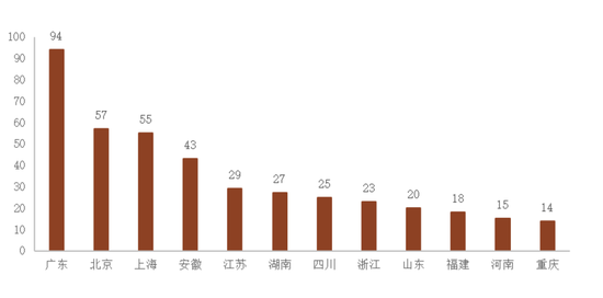 从500强企业省份分布情况看,超八成的企业集中在广东省、北京、上海、安徽省、江苏省等12个省市。