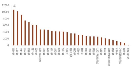 2018年,全国物业服务企业共12.7万家,比2017年增加0.9万家,增长率7.2%。山东省、广东省、江苏省、河北省和河南省企业数量均超过7000家,分别为1.07万、1.02万、0.9万、0.75万和0.7万家。
