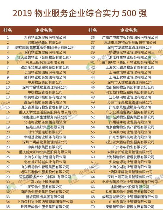 10月15日,由中国物业管理协会、上海易居房地产研究院中国房地产测评中心联合开展,中物研协具体实施的《2019物业服务企业发展指数测评报告》正式发布,“2019物业服务企业综合实力500强”及“各细分业态物业服务领先企业榜单”同期揭晓。