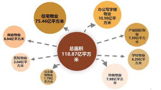 此外,学校物业、医院物业、公众场馆物业和其他物业,管理面积分别占比5.30%、1.72%、1.50%和6.71%。