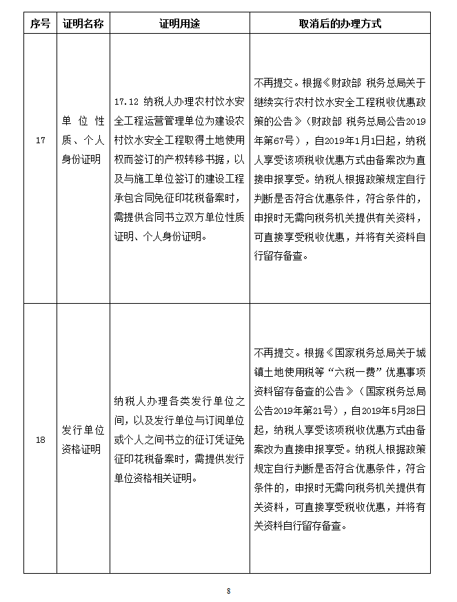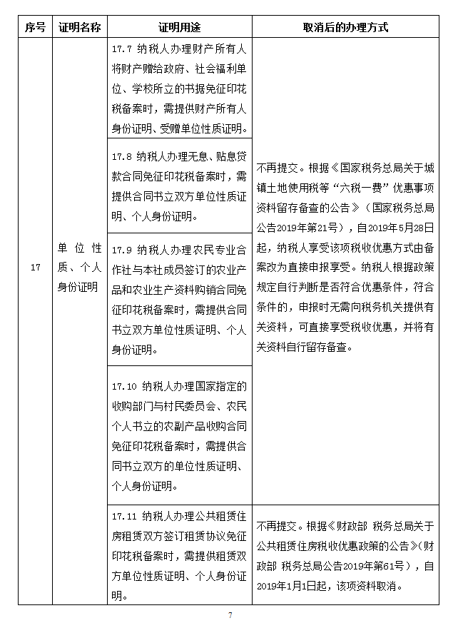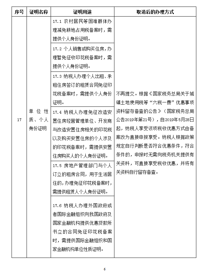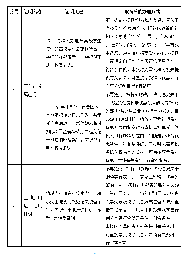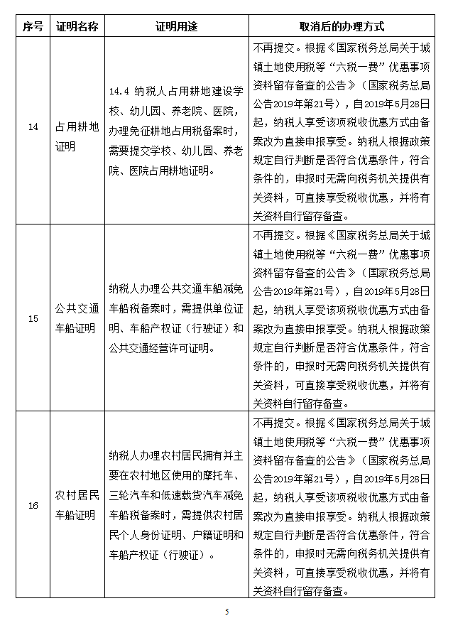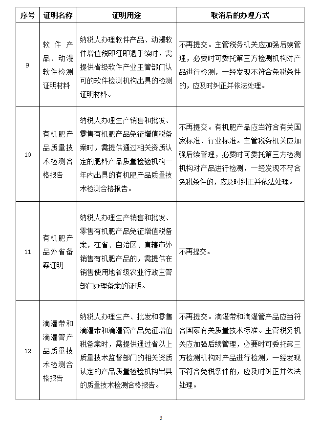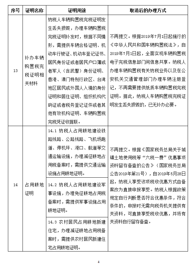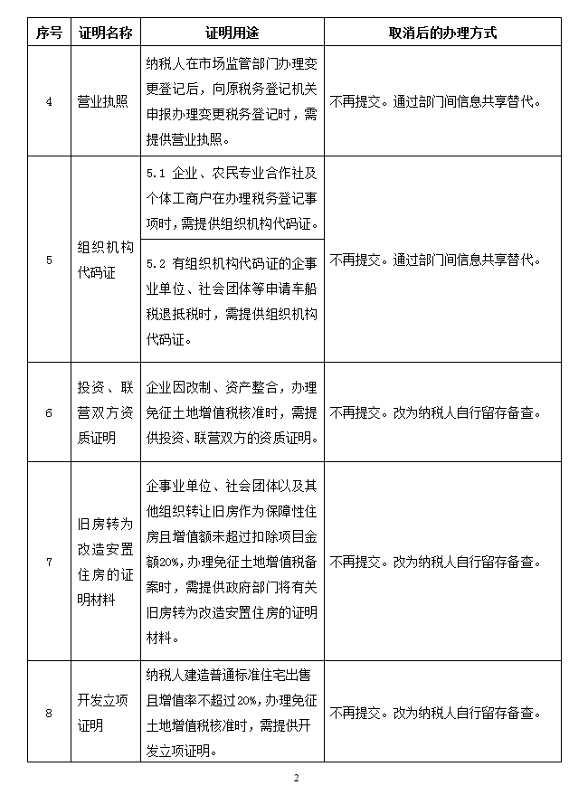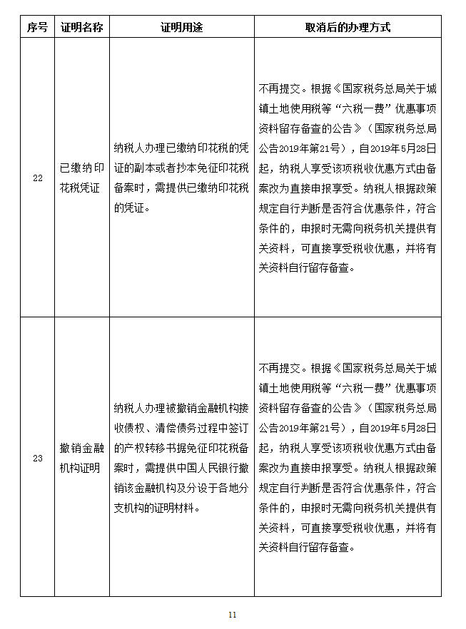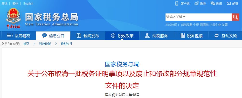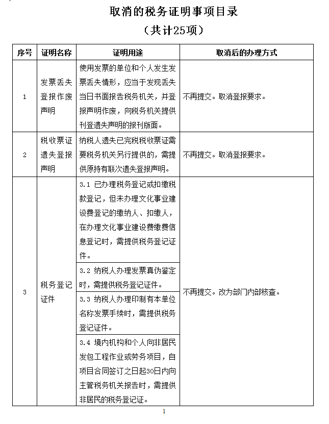 取消的税务证明事项目录