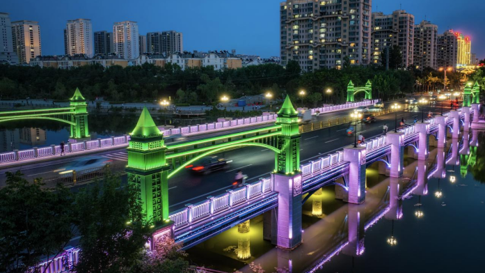 靓化工程:提升颜值,城市夜景更璀璨夜幕降临,荆河两岸蜿蜒的景观灯倒映在波光粼粼的水面上,勾勒出流动的光影。两岸的人行步道上,市民三三两两或漫步、或健身,享受着一天中最悠闲的时刻。“以前晚上黑灯瞎火的不敢来,现在装了这么多灯,又漂亮又安心!”正在健身的李女士笑着说。这美丽夜景的背后,是滕州大力推进的城市靓化工程。近年来,全市累计完成善国路、龙泉路、北辛路、平行路等21项道路品质提升工程,累计提升道路里程93.5公里、覆铺沥青路面约210万平方米,改造提升人行道约40万平方米,新建提升停车位约6100个。在完善基础设施的同时,围绕高品质城市,通过一系列“靓化”工程打造城市形象,荆河公园、火车站前广场、高铁站前广场景观照明亮化工程,以及荆河、小清河沿岸景观照明亮化,累计增设替换路灯1440余盏,新增灯带约1.5万米、庭院灯620余个,让城市夜景更加璀璨夺目。特别令人温暖的是,在追求“亮化”的同时更注重“温度”。为保障残疾人、老年人等人群共享社会发展成果,滕州市新建盲道220公里,30余处公园广场完成无障碍改造,新建项目无障碍设施达标率100%。